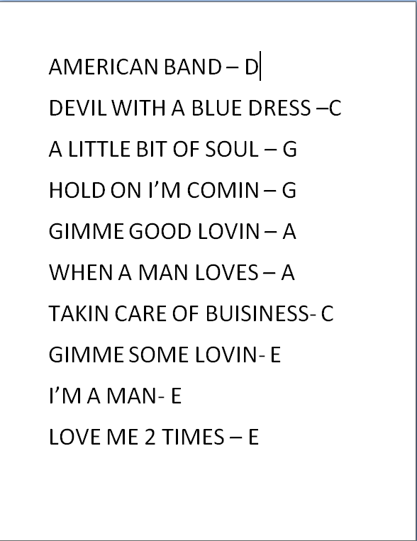 7th Annual PumpkinFest October 2, 2010 R*Gang Setlist